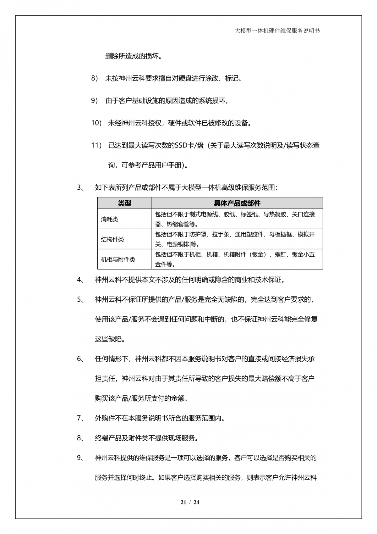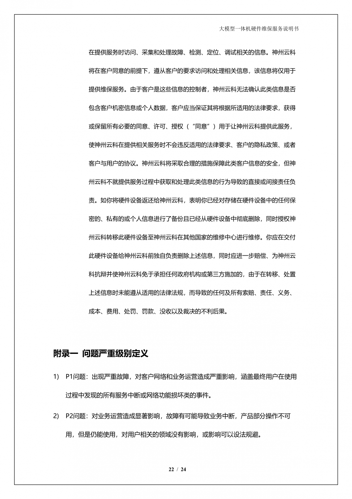 神州A924 DS大模型一体机硬件维保服务说明书_V1.1